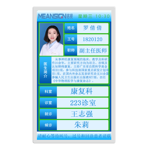 用途:醫(yī)生診室門(mén)口屏/二級(jí)分診屏